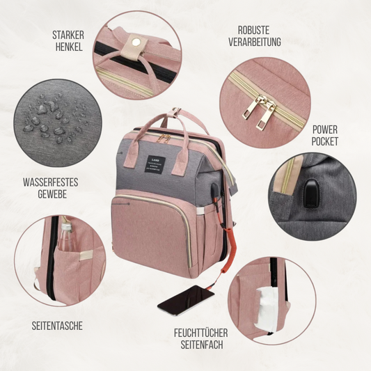 „Ich hätte nie gedacht, dass ein Rucksack so viel verändern kann. Alles hat seinen Platz und der ausziehbare Wickeltisch ist ein Gamechanger, wenn man unterwegs ist. Mein Mann und ich lieben unseren BabyMate!“