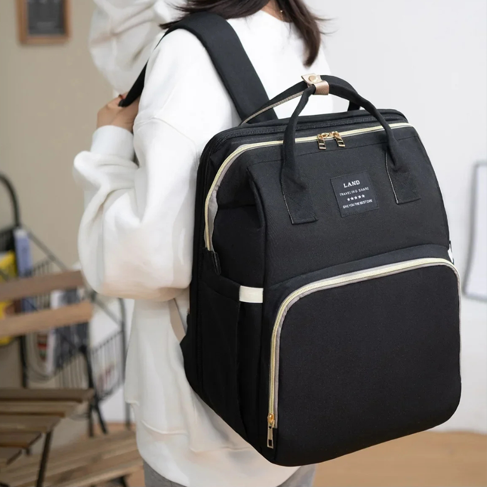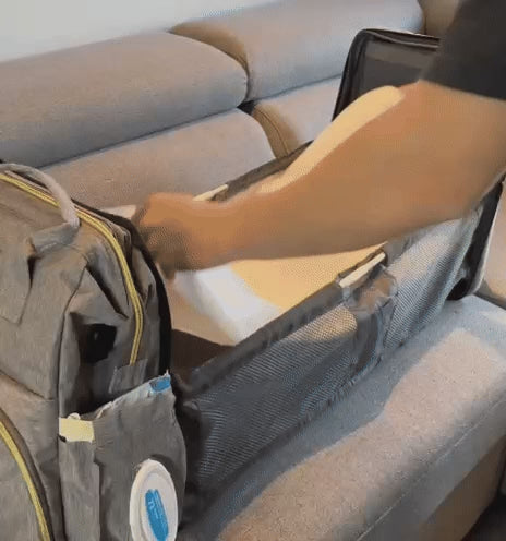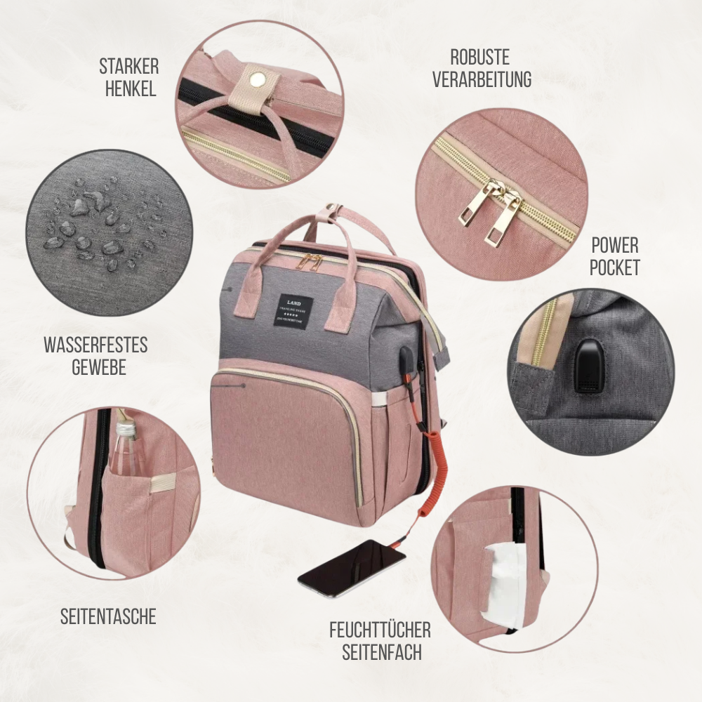 Ein smarter Rucksack, der sich in Sekunden zu einer hygienischen und komfortablen Wickelstation verwandelt – und das überall dort, wo du sie brauchst.